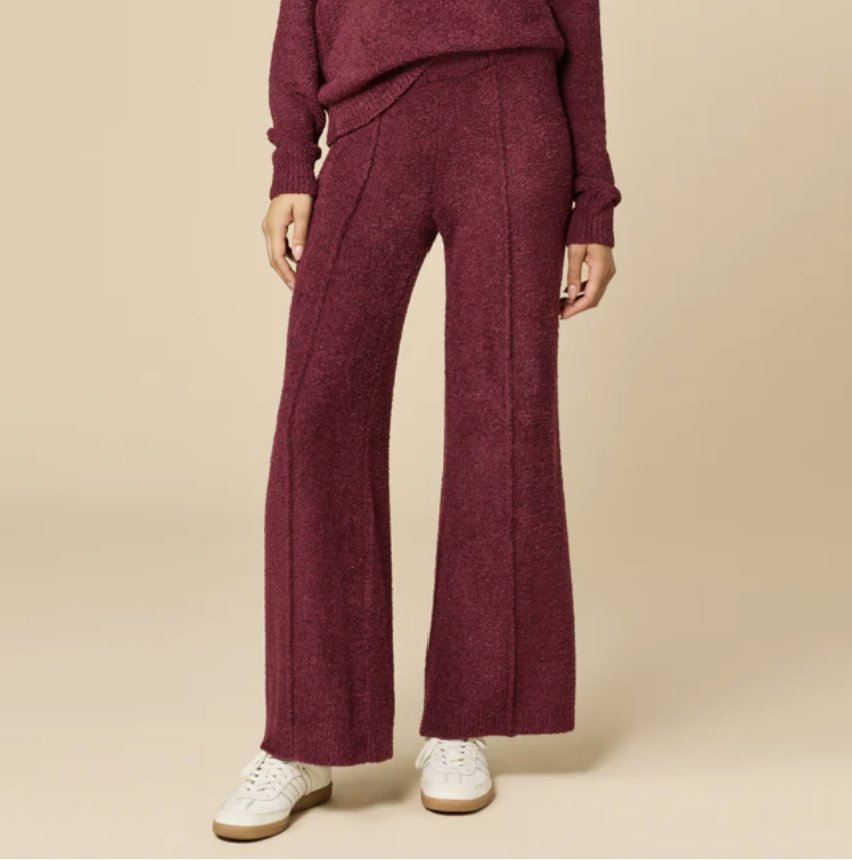 Designed to elevate everyday comfort, these wide leg pants blend softness with modern polish. Made from an ultra-marshmallow textured knit, they feature a flattering high-rise waist, full-length silhouette, and a clean center front pintuck seam that adds a tailored touch. Comfortable enough for lounging yet refined enough for casual daywear, they pair beautifully with the coordinating Ultra Marshmallow Shawl Collar Pullover for a sleek and sophisticated set.