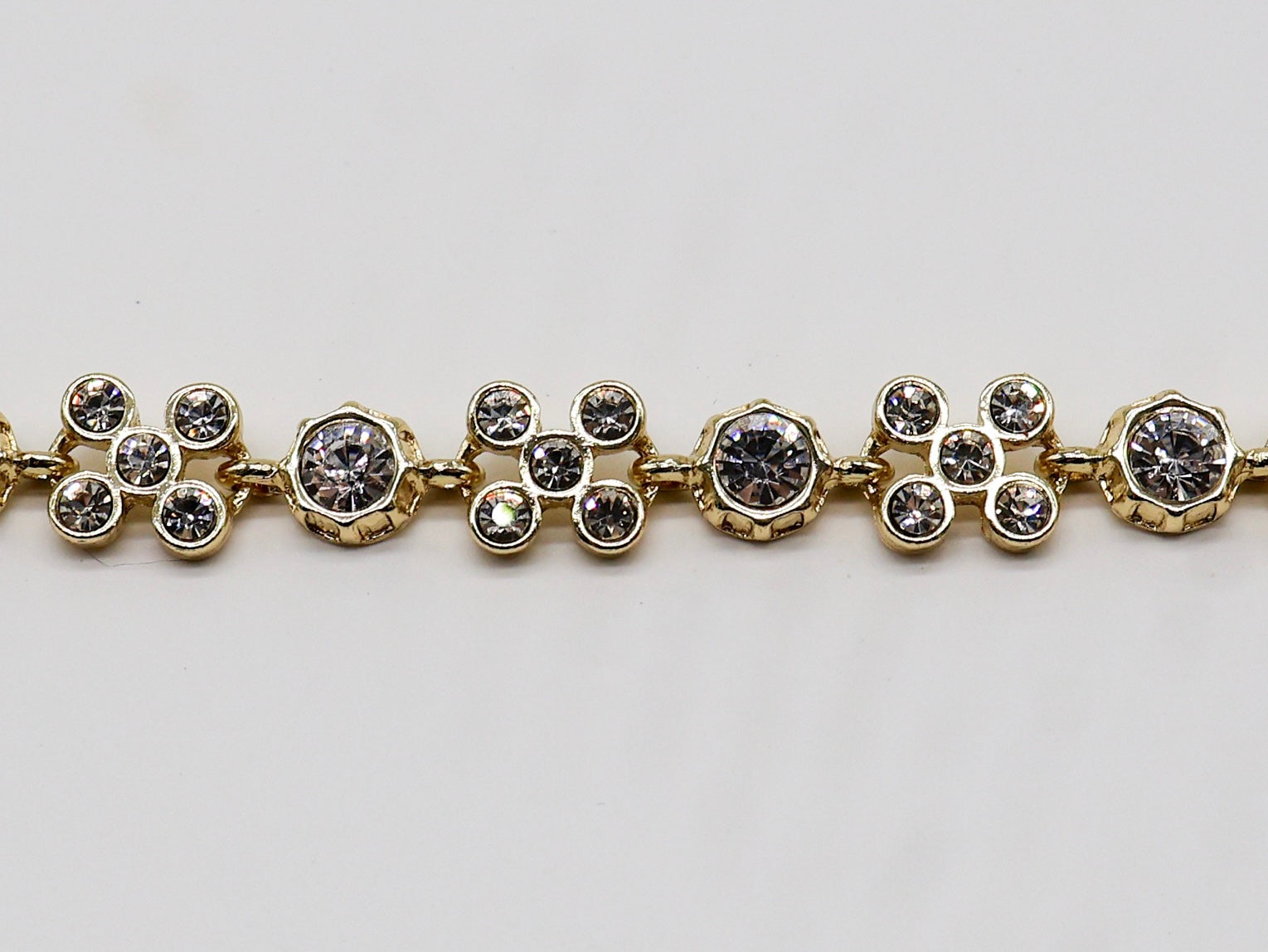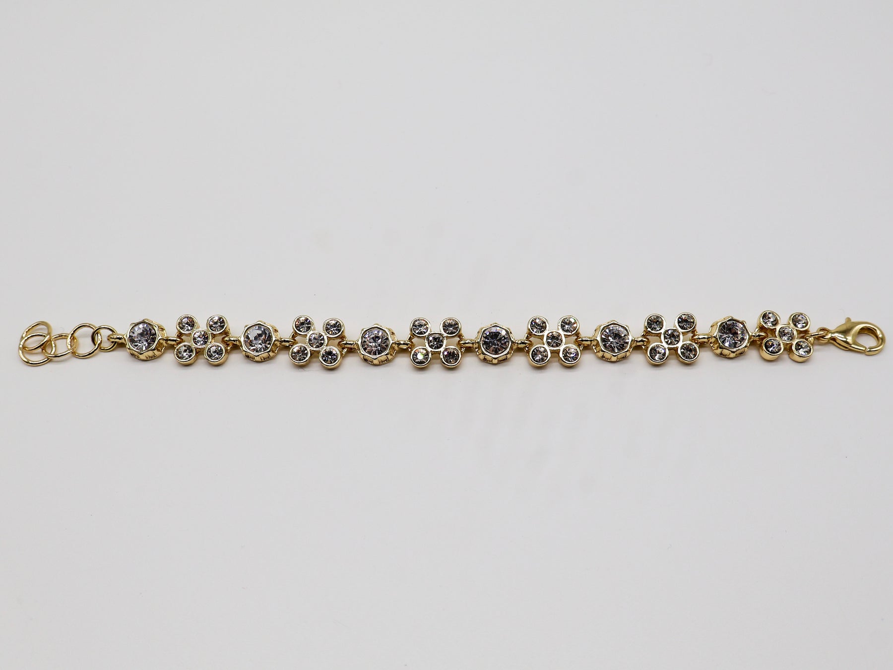 This shimmering bracelet features a repeating pattern of clustered crystals linked together to create a delicate yet eye-catching design. Each cluster is thoughtfully set to add depth, sparkle, and refined texture, giving the piece a timeless elegance that complements both casual and dressy looks. Lightweight and comfortable to wear, it offers classic charm with a touch of brilliance—perfect for adding a polished finishing touch to any ensemble.