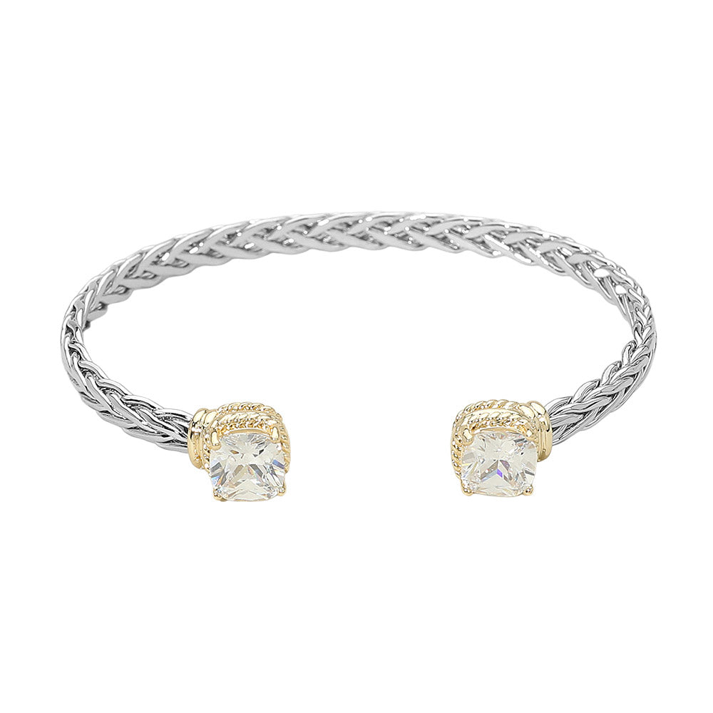 CFB1583 - Braided Cuff Bracelet w/ Double Crystals