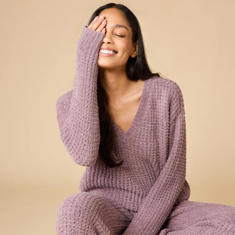 This V-neck lounge top is crafted from Softies’ signature marshmallow fabric reimagined in a soft waffle knit for an elevated, cozy feel. Designed with a relaxed silhouette and long sleeves, it offers easy wear for lounging, layering, or casual everyday moments. The plush knit texture provides warmth without heaviness, making it a versatile staple that feels indulgent yet effortless. Ideal for pairing with matching bottoms or mixing into your everyday wardrobe, this top delivers comfort you’ll reach for again and again.